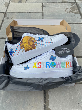 "This girl is amazing. Shoes came out just how I wanted them, she was very nice about me asking to switch some things up which is very nice. With my second pair I told her to surprise me and she definitely didn’t fail with that. Very detailed work, although I did have small pencil marks left on one of the pairs from the first sketch, which isn’t a problem for me, it’s not easily noticeable. Would recommend 100% "